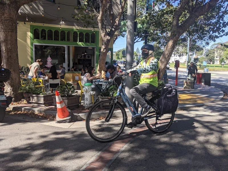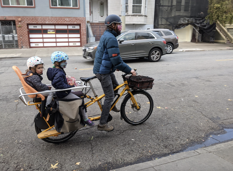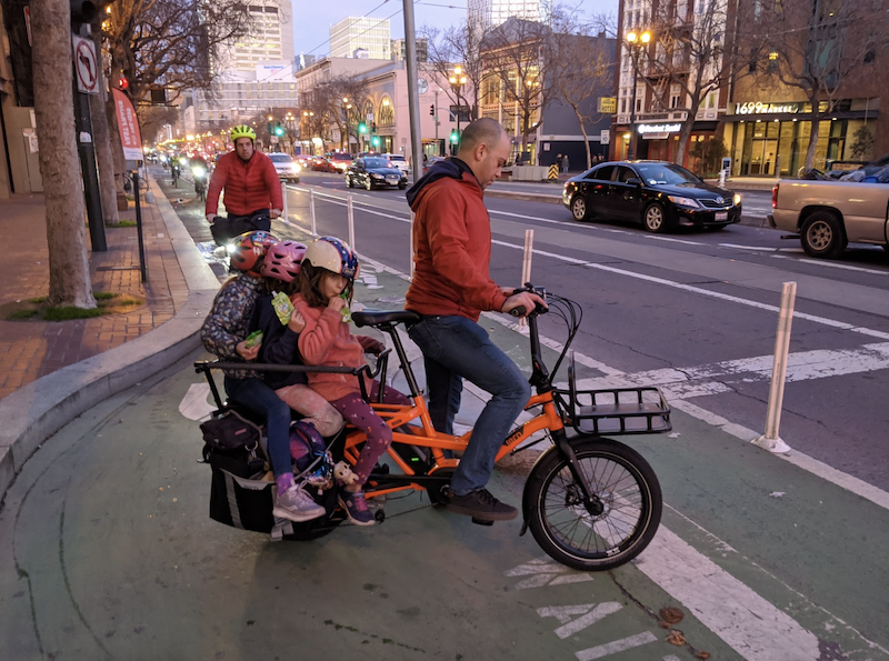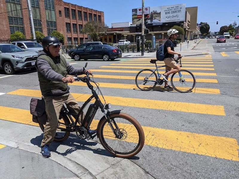 But San Francisco has lots of hills and the difference between a fast easy bike ride vs. an arduous uphill journey is rendered moot with just a teeny tiny bit of extra oomph. In my daily trips I have a variety of options. I could walk or pedal up those hills, I could take a bus or streetcar, I could use a ride hailing service, or I could drive. The electric bike makes almost all my trips viable without a vehicle unless the weather is particularly bad or I’m carrying big heavy things. Not having to deal with traffic congestion or parking is a tremendous upgrade. And the distances I’m willing to go on a bike expanded greatly with the electric boost.