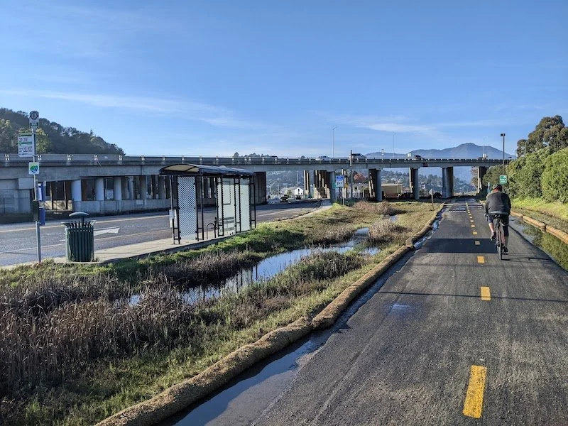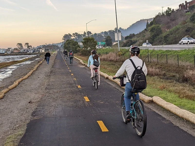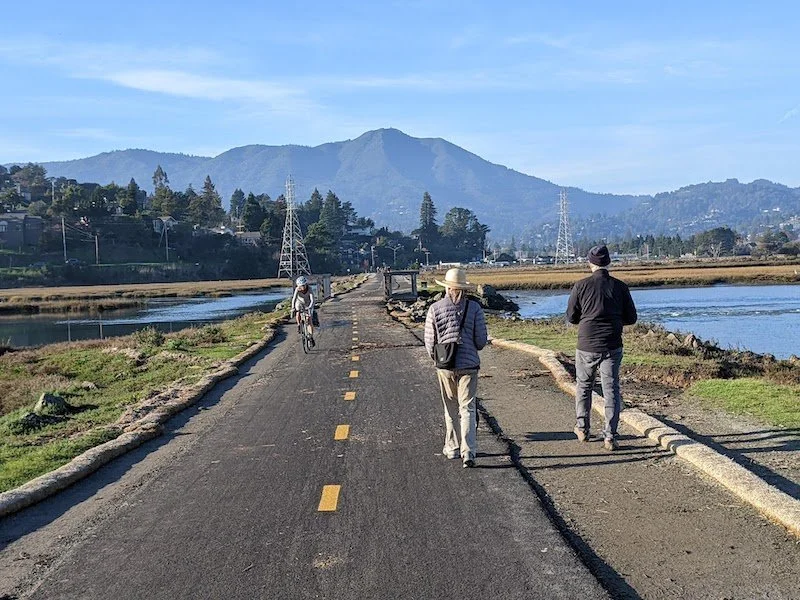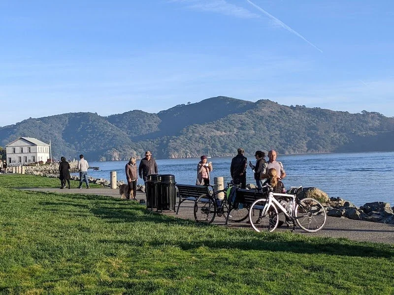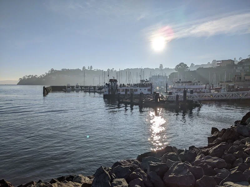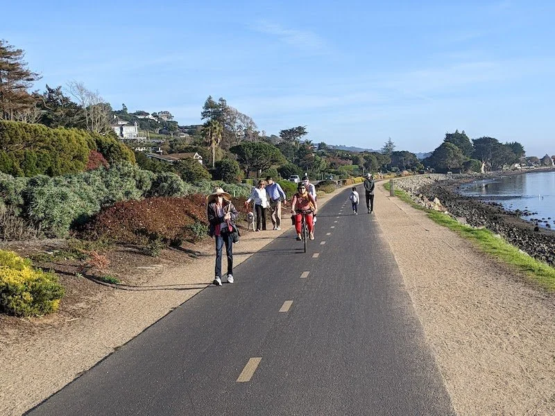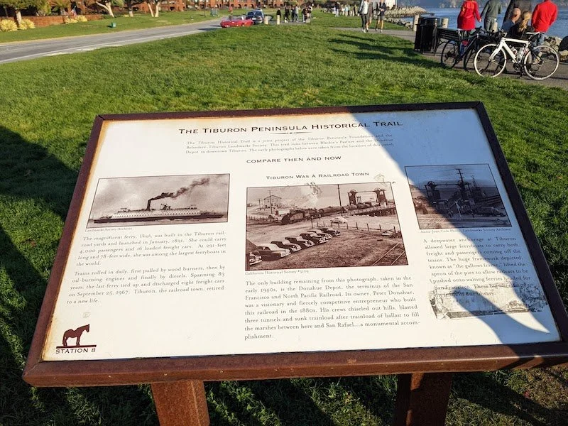 The unpleasant portion of the journey from San Francisco to Tiburon is generally worth it given how nice the waterside stretch is along the bay. This is courtesy of an Irish immigrant named Peter Donahue circa 1884 who established the old railroad and left behind this lovely strip of redundant scenic dirt.