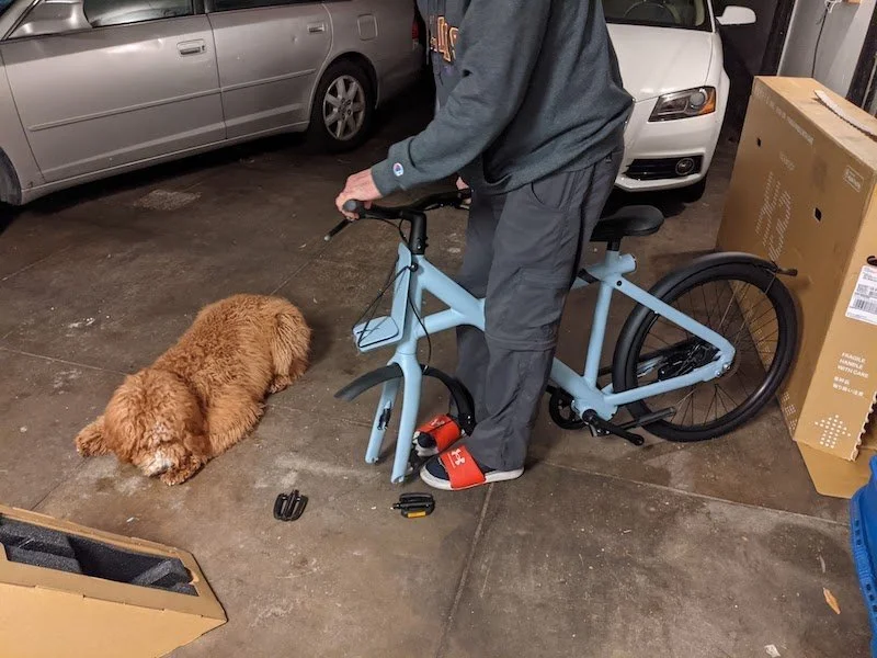 There’s a Van Moof store a few blocks from my home and the clerks were happy to give me a test drive and show me all the features. But when it came to the actual sale I was directed to their website. These days physical shops are about brand presence in strategic locations, not sales. Van Moof is based in the Netherlands, the bikes are manufactured in Taiwan, and thier storefronts are in Paris, Amsterdam, Berlin, Tokyo, San Francisco, New York.... The bike was ordered, shipped, and eventually arrived at my door in a big box. It was specifically designed to be self assembled by the consumer at home with a little allen wrench and some YouTube instructions with minimum fuss. I’m the least mechanical person I know and even I could put this bike together. I tend to name the inanimate objects in my life and I instantly dubbed her Muffy.