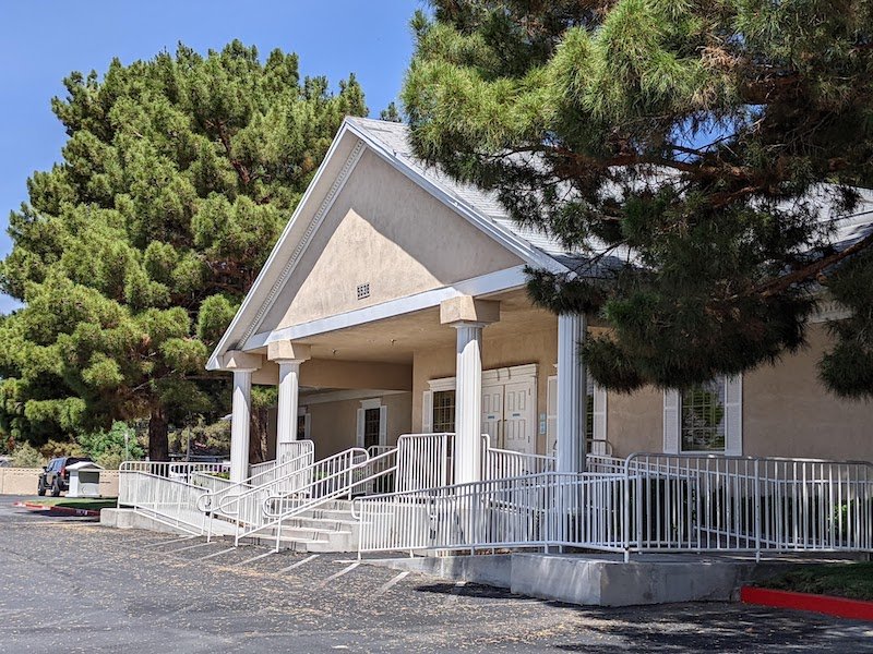 This building wasn’t on my lookie-loo list of green construction in Las Vegas, but it demonstrates what most buildings in the area are like. This property embraced a Greek temple aesthetic in extruded aluminum columns, vinyl peel-and-stick dentil trim, and synthetic stucco. Once again, it’s trapped in a sea of black asphalt that exacerbates the desert heat. The hum of dozens of individual room air conditioners echoed off the retaining walls in the parking lot. Window blinds are permanently closed as the sun beats down on the exposed walls. Would new LEED certified Net Zero construction be better? Sure. But these existing buildings are going to continue to be inhabited for a very long time as they are because it’s uneconomical to replace or retrofit them.