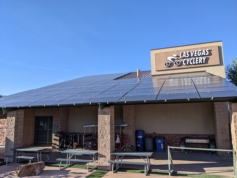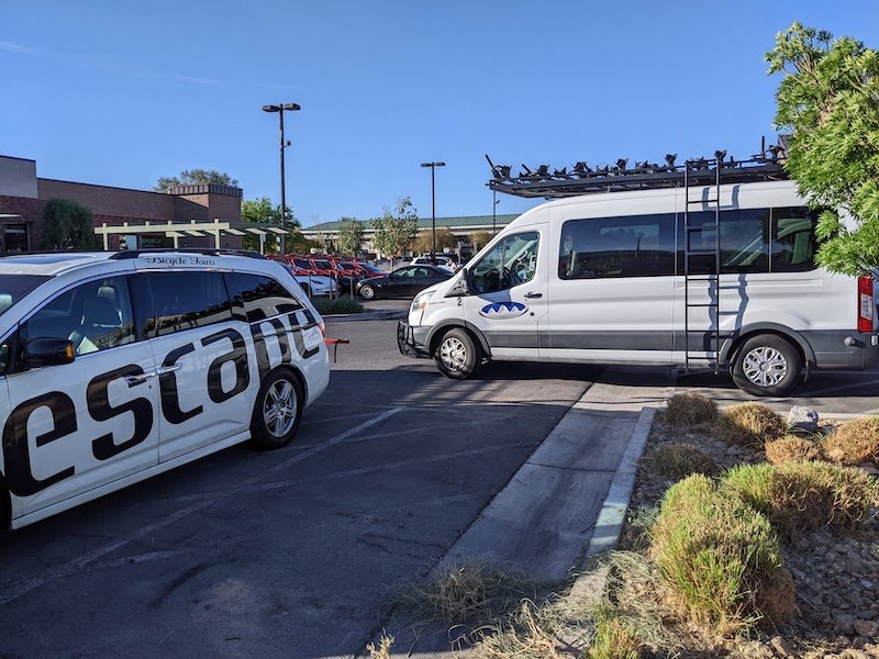 Customers and employees arrived with their bikes inside cars and trucks. The company offers adventure tours where groups pile into vans fitted with bike racks to drive them to select locations where they ride around, then get driven back to the cyclery. It goes without saying that most of these adventure cyclists arrive in Las Vegas by air as I did.