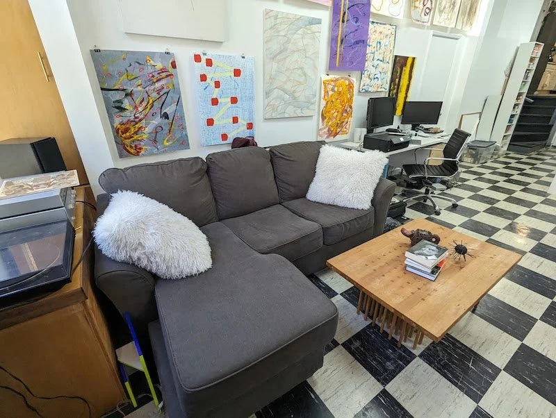 The sofa was donated by a friend who was ready to upgrade. He graciously helped deliver it to the building. And that’s where the sub rosa thing comes in.