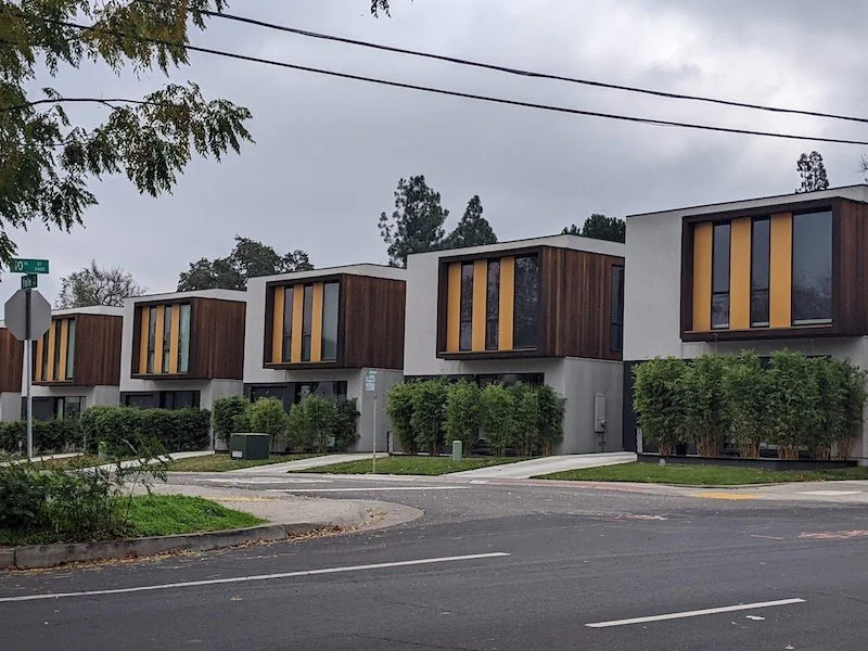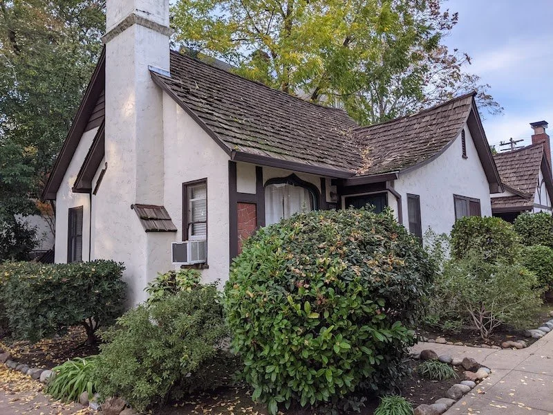 This cottage court was built in the 1920s in what is sometimes referred to as the “Disney” storybook style. It’s kitschy and overly romantic, but people do tend to love it. The same plot of land that would otherwise hold a single family home with a front lawn and back garden can equally accommodate a half dozen perfectly respectable little homes for rent or sale. If the goal is to provide decent homes for people at different price points this is a great option. But if the goal is to intentionally exclude people of lesser means (which is almost always at the heart of zoning regulations) this is completely unacceptable. Ironically, the fact that so few properties like this exist makes these cottages command very high prices. Even market rate “affordable housing” can be made unattainable if the larger institutional dynamics put the squeeze on things.