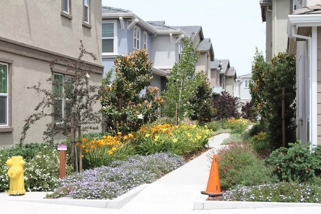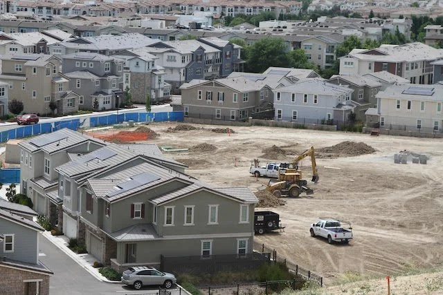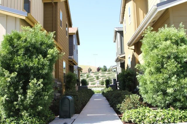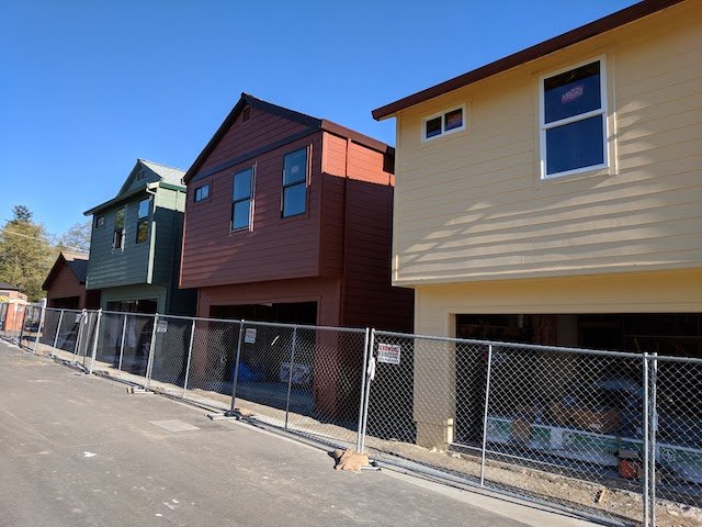 These new homes are remarkably similar to the old San Francisco row houses complete with accessory dwelling units above the garages. Did these materialize instead of ranch homes with front lawns and back yards because of some obscure state legislation? Or was it just the relentless push of external economic reality catching up with suburbia?