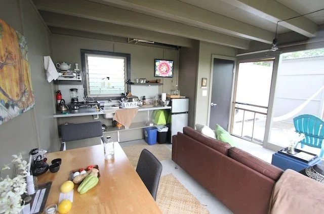 The happy medium for middle class sub rosa duplex accommodations has long taken the form of the '“craft room.” Property owners who are more or less solvent and otherwise respectable (define as you may) often chose to carve out a section of their existing property and take on a “roommate” for income. Most home owners as well as renters prefer their own space and don’t like sharing beyond a certain point. Creating legally segregated spaces is an administrative can of worms and gets very complicated and expensive really fast. But a bed with a private bath and a door out to the garden works pretty well. Add a wet bar, microwave, portable hot plate, and mini fridge and it’s just a spare room with some plug in appliances. Nobody here but us chickens.